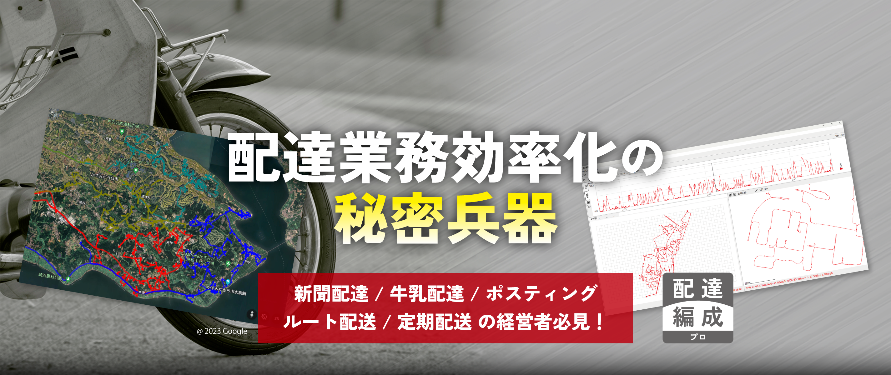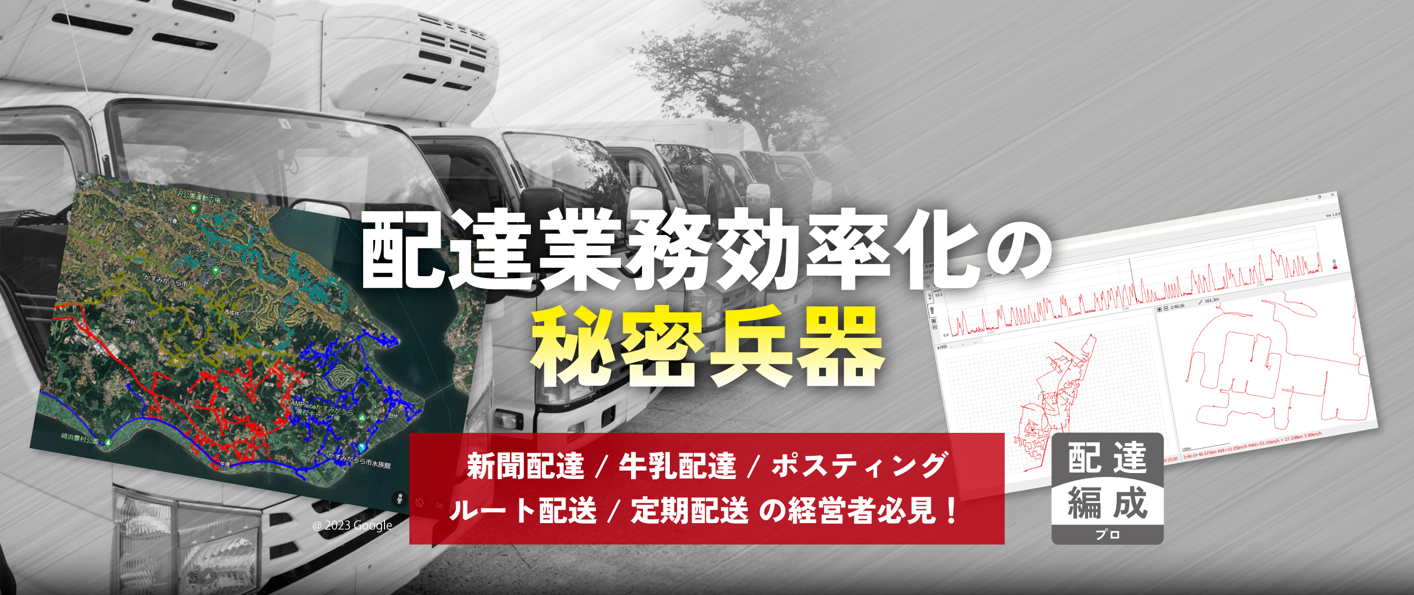 配達エリアの拡大に伴って生じる配達エリア編成の煩雑な業務を、「短時間に」「簡単に」するとっておきの秘密兵器。それが配達編成プロです!